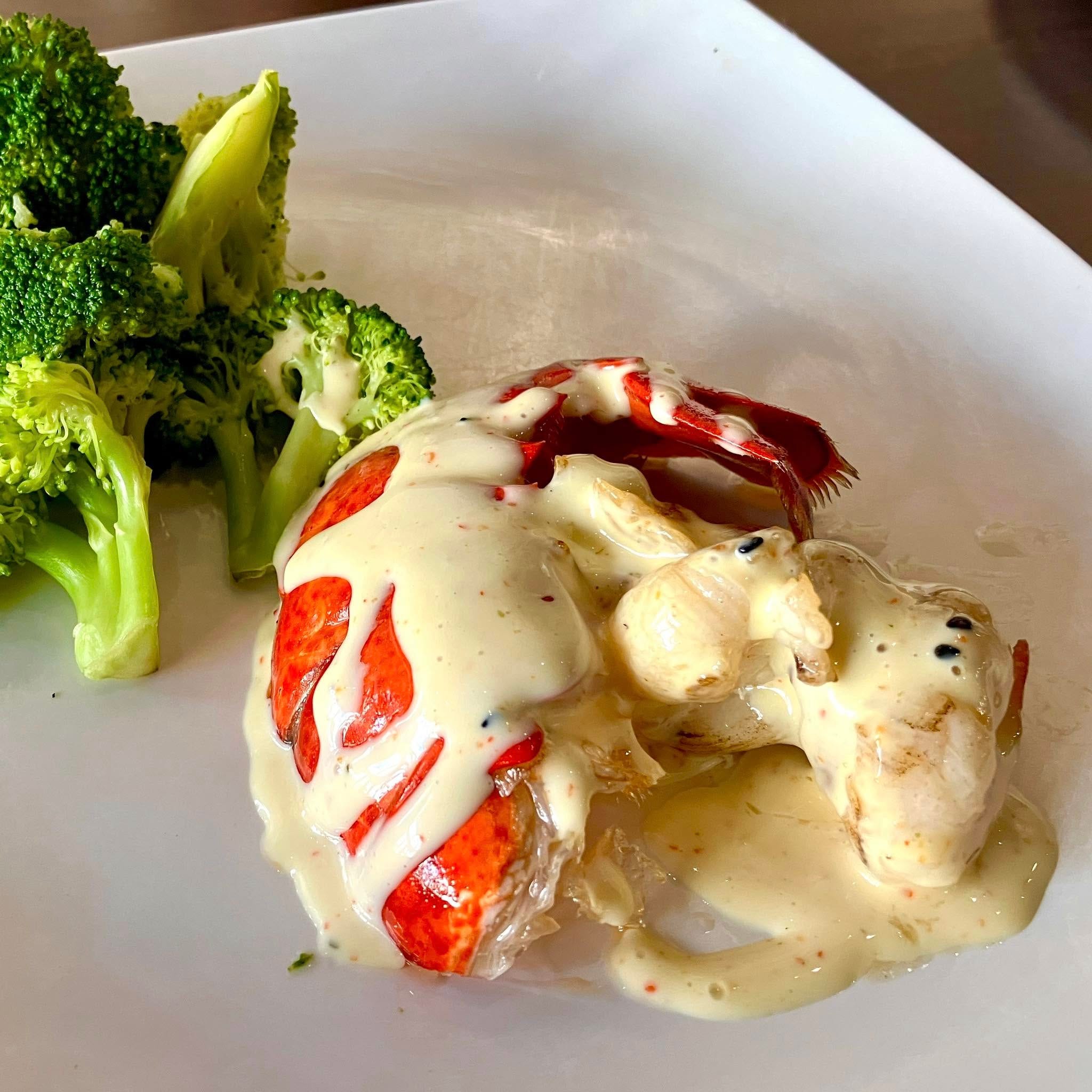 LI’L LOBSTER TAIL: I got this very interesting little grilled lobster tail at Shanghai Dumpling House not long ago. It was served hot, had a nice texture, an excellent flavor, and a really tasty sauce. I loved it. Lobster is, like, my favorite thing on Earth, and here in these mountains, I'm prepared to pay beaucoup dollars for it, and I did. 😂 🦞 💰