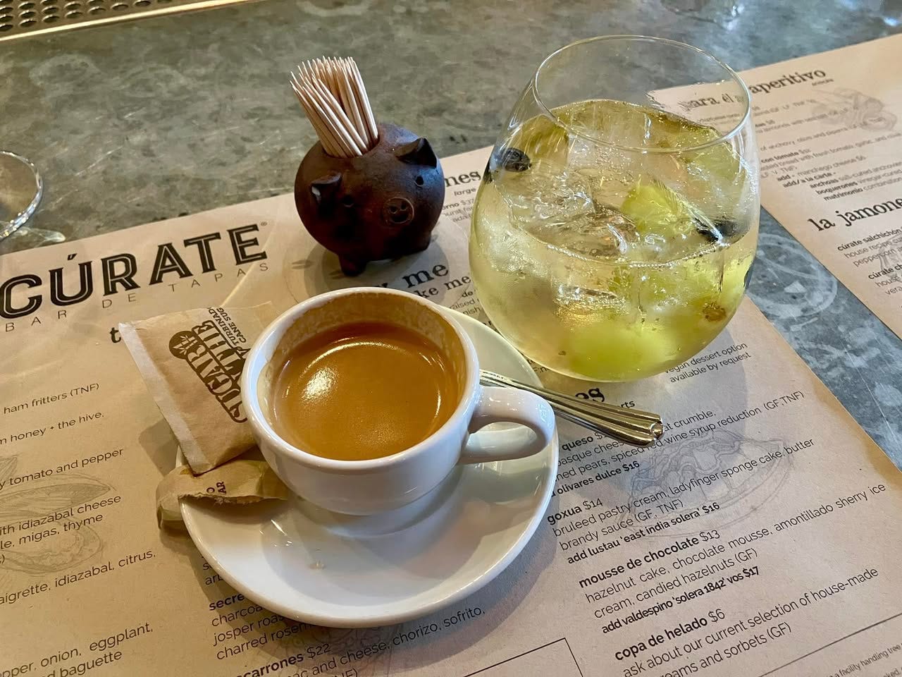 PRO-TIP: Especially for locals: if you're a fan of Cúrate, NOW is the time to go. Before they won their James Beard Foundation award, you needed rezos a couple weeks in advance. After they got their JBF award, the wait time became a couple of months! Now days, though, in this (hopefully brief) post-hurricane period, you can get reservations for Cùrate the week of, even the day of, and chances are that at certain times of day, you can walk-in with no reservations and get a table or a seat at the bar, which is exactly what my wife and I did a couple weeks ago.